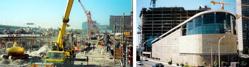 Maintaining accurate survey control was difficult, because of the limited sight lines between the surrounding buildings and the instability of the overhead freeways.